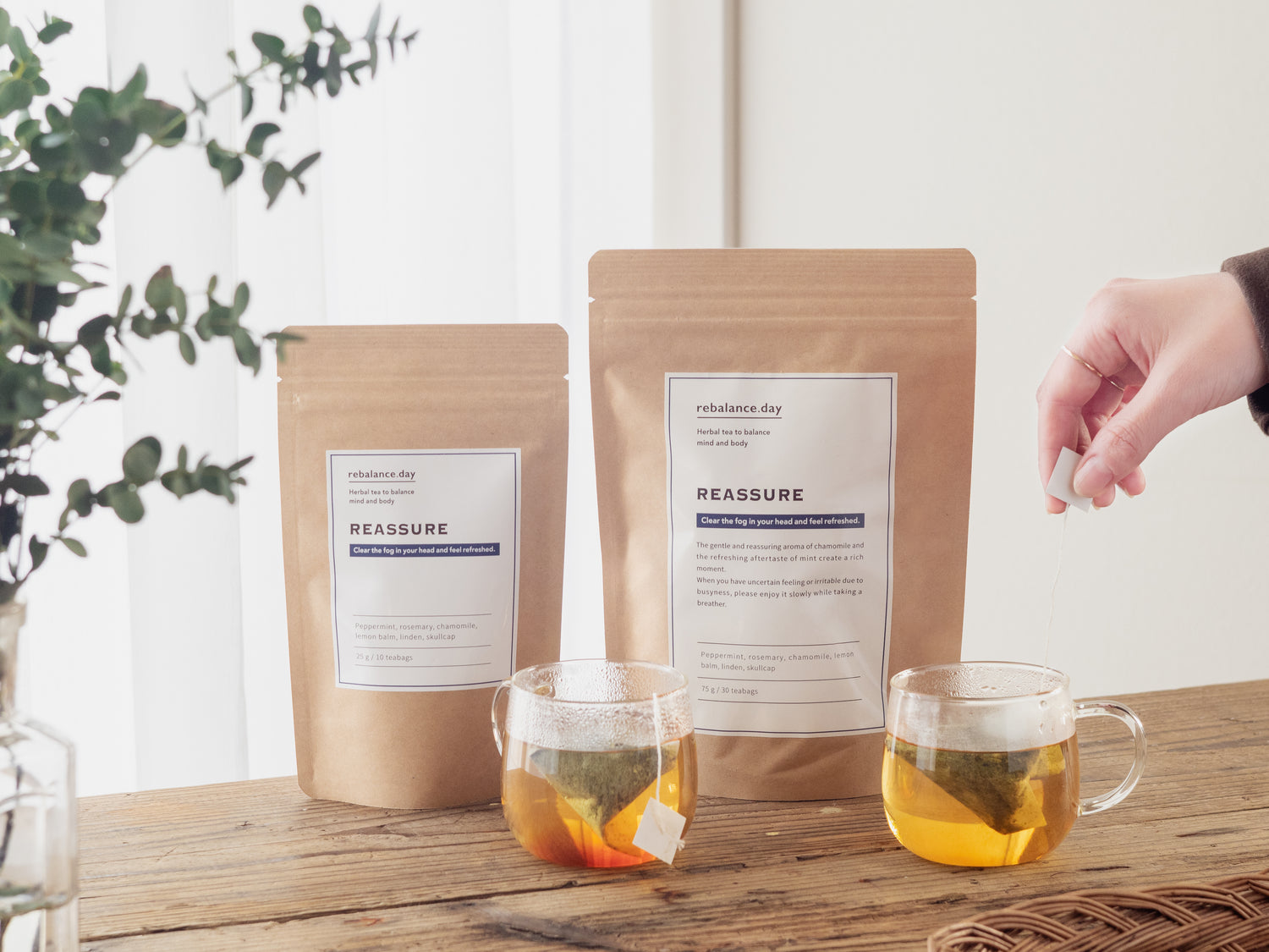 rebalance.dayではシーン別にお楽しみいただけるよう、独自にブレンドしたハーブティーをご用意しております。